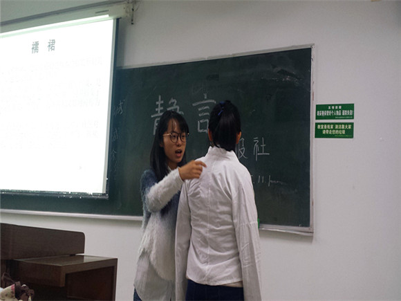 活动开始前,副社长柯茗怿向大家展示了上一学期社团举办的主要活动图片文字等记录材料,一幅幅优美的图片配上舒缓典雅的音乐,在一片轻松的氛围中向新加入的同学们较为全面地展示了社团的发展状况,使社员们用最直观的方式对社团有大致的了解。随后,讲解活动正式开始。根据汉服发展的历史脉络,柯茗怿用图文结合的方式向社员们讲解了汉服在不同历史时期的发展以及汉服的不同形制和常见搭配,让大家从时间和形制两个维度去认识和了解汉服,还通过现场试衣的活动让大家直接感受汉服交领右衽、系带中缝等形制特征。之后,社长陶殷缘结合视频、图片等资料向大家讲解了什么是汉服,介绍了汉服发展、停滞以及复兴的历史脉络,并且着重区分了汉服与古装、Cosplay服、影楼服等服装,在比较分析中让新社员们对汉服的概念有更清晰更深刻的认识和体会。强调了汉服作为汉民族民族服饰的地位,集中讲解汉元素时装、改良汉服、汉服混搭时装等当今较为流行的概念,鼓励将作为民族服饰的汉服日常化,表达了汉服走近日常生活的美好期盼。同时给社员们推荐了一些可靠的信息资源和汉服商家,帮助社员们进一步了解汉服、掌握商家资讯,提高了自身对于汉服的辨别能力,避免今后在选购汉服的过程中轻易上当受骗。不少参加活动的社员表示受益颇多,并且十分期待汉服社下次的活动。