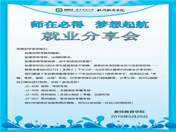 “师诠师美”师范生成长体验分享会之“师在必得,梦想起航”就业分享会在学正楼406、408、505、507成功举办。此次分享会的嘉宾有博彩网址大全