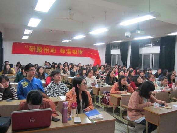 2013级9位研究生给本科生分享考研经验,吸引了众多同学的参加,会场座无虚席。
