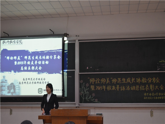 “师诠师美”师范生成长体验分享会暨2013年校友寻访活动总结表彰大会于仙林校区学明楼401教室隆重举行。本次活动特别邀请了南京师范大学校友会工作处副处长开云、博彩网址大全