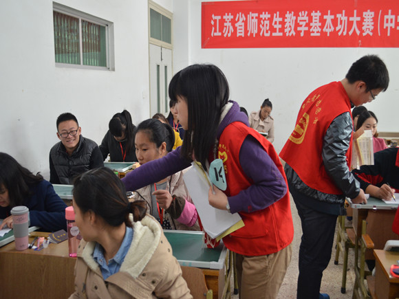 本次志愿工作为期三天,主要集中于23、24日。11月23日上午,第二届江苏省师范生教学基本功大赛正式开始。工作人员于6点50分准时到岗进行考场准备,随后志愿者们展开了基础知识笔试和书写考试的检录校对工作,并协助监考老师维持秩序。11点20分,志愿者开始准备说课考场的布置,为会场一一摆好评委席卡、摄像机、计时器等,负责场外秘书工作的志愿者们也早早守候在各考场之外,等待着选手的到来。下午的比赛更为激烈,为帮助选手们发挥出最好的水平,志愿者们还主动与候场选手亲切交谈,帮助他们调整心态。当天下午的演讲、说课比赛在选手与志愿者的温情互动中落下帷幕。