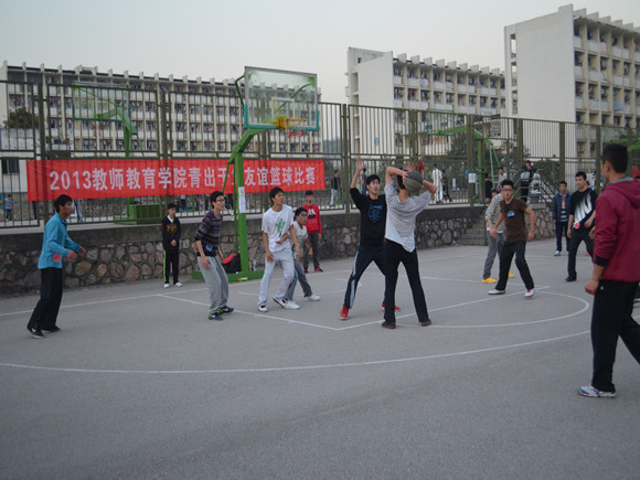 “青出于篮”友谊篮球赛决赛第一场于下午四点正式打响。进入决赛的两支队伍分别是数学师范班和汉语言师范班。