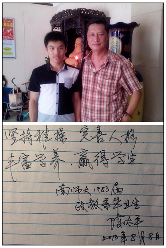 采访之初,陈老师就深情回忆了在母校难忘的求学经历,其间多次提及几位恩师,感激之情溢于言表。在感慨时光荏苒的同时,陈老师也表示对母校近些年的变化和发展都有所关注,并表达了希望母校越来越好的美好祝愿。陈老师从教30余年,教学经验十分丰富。在谈到教学方法时,陈老师为我们提供热情指导,他强调作为老师首先要热爱学生,真诚对待学生,在教学过程中应当结合学生的心理特点,关爱学生;其次要掌握语言的艺术,让语言生动且富有感染力,将零散的知识立体地呈现给学生,让学习变得更有吸引力。在提及年轻教师的培养时,陈老师分析了目前中学教学现状,一针见血地指出目前年轻教师存在的专业知识不够扎实、理论研究不够深刻、知识面不够宽广等问题,对当前在校师范生表达了殷切期盼,希望大家能够充分利用大学里的学习条件,多读书,读好书,注重知识积累,加强自身修养,为将来更好的就业打下坚实的基础。
