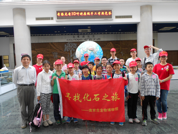 2013年7月3日星期三上午9:00,南京古生物博物馆组织的汤山夏令营活动踏上了旅途。南京师范大学的3位志愿者——钱玲琳同学、张晨同学、张梦娜同学,协助博物馆的老师,与19位夏令营的参与者一同前往汤山国家地质公园参观猿人洞,了解人类进化的历史,走上“寻找化石之旅”。