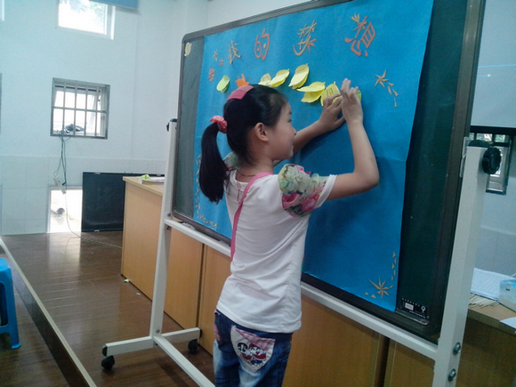第二节课,同学们在成员程庆保的指导下学会了写信的格式,并纷纷动笔写下自己的心里话,给朋友、给老师、给家长。刘奕志同学在给小组成员的信中写到“老师,谢谢你对我们的关心,您辛苦了”,让小组成员们感动不已。接下来由成员张冉教同学们将写好的信折成信封的模样。学生们年龄不一,年纪较长的同学迅速领会步骤后,积极地教会还没理解的小朋友们,整个班级气氛融洽。