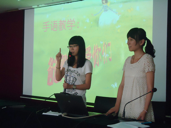 为了丰富课堂内容,主讲人还教孩子们学会“爸爸妈妈我爱你们”的手语,由于比较简单、有趣,孩子们表现出极大的兴致并且表示回家后要用此方式表达自身对父母的爱意。