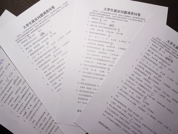 此次就业压力与人才培养调研小队的数据统计工作任务繁重,小队设计了两份问卷,目前是对就业压力问卷的数据进行分析。有关就业压力的调查问卷主要针对的是在校大学生,因此,小队成员利用6月20日以及21日两天时间,在南师大仙林校区各处展开调查,图书馆,食堂,路边都有队员们辛苦工作的身影。问卷一共发放400份,基本能够涉及全校各个年级的学生,同时调查范围广有助于数据的多样性和普遍性,充分反映学校不同年级,不同专业的学生对于当前就业压力的看法。问卷调查当前学生对于自己专业就业前景的看法,包括学生对将来就业薪酬的期望,对就业压力来源的分析,旨在了解当前大学生的就业压力问题。本次的数据分析采取分队合作制,队长将全队分为四个部分,每一队的队员分析100份,力求将数据分析做到精确、全面,有力地反映出当前大学生对就业的期望以及他们对就业压力的看法,所以本阶段的工作十分重要,将为今后的调查奠定基础。