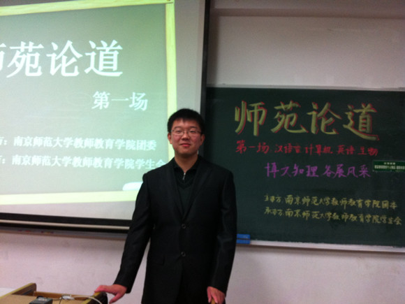二号参赛者是计算机师范的景添同学,他深入浅出地为我们讲解了如何运用C语言统计单词数。景添同学生动幽默的讲课使C语言变得简明易懂,相信即使是零基础的同学也受益匪浅。三号参赛者是英语师范的顾旻同学,她的说课向我们诠释了Body Language的奥秘。人物面部表情与单词的配对环节,更是将气氛推至高潮。最后上场的是生物师范的周志鹏同学,他的课题是发酵食品。他以葡萄酒、食醋、酸奶、腐乳的制作过程为例,幽默风趣地说明了发酵的原理。