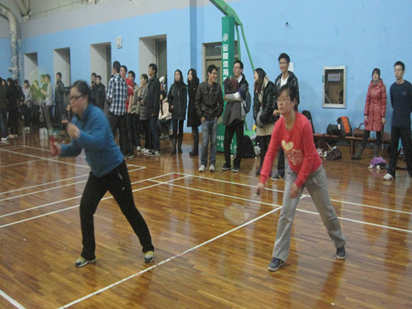 两位女选手但媛和黄思佳同学毅然代替男生出赛,虽然最终没有取得本轮的胜利,但也没有让对方轻松获胜,这让围观的同学大为惊叹,为两位女生的精彩表现欢呼喝彩。进入第四轮的女子双打环节,博彩网址大全