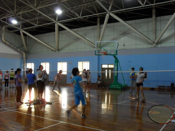 羽毛球馆里的闷热似乎是大家的热情所致。首先进行的是汉语言文学班和历史班女单比赛,汉语言文学班的女子啦啦队不停地加油助威,本局毫无悬念,汉语言班代表队的曾欣艳同学连赢两局。还有历史班和英语班的男双,四个男生挥汗如雨,力度较女生更大,青春洋溢。接下来的汉语言班与历史班的男女混双打得极为激烈,一度战成1:1平,最后汉语言班险胜。比赛中既有紧张也有欢乐,旁边加油的同学还自编自导了舞蹈边跳边加油……在两个小时后,结果揭晓,汉语言班夺得第一,历史班次之,英语班获得季军——比赛完美结束。