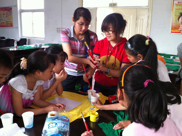 有一群跃动的音符打破了这种死寂——英语师范班参加暑期社会实践的孩子们,怀着满腔热忱,冒着烈日,四处寻觅生源。组长陈子晨把队员们分为两组进行挨家挨户的走访,队员们用心地讲解支教事宜,全然不顾劳累和闷热。锁石村的村民也很支持这次支教活动,是实践小队坚强的后盾,有力的臂膀。最终,在所有队员汗水和心血的共同浇灌下,支教队顺利招生并成功展开了趣味支教活动。