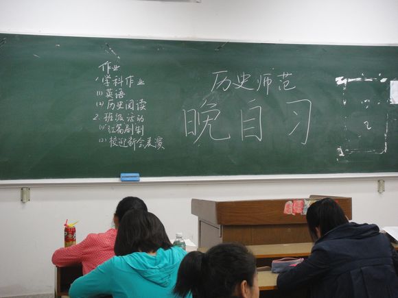当晚六点半,同学们准时来到各自的教室参加晚自习。为了让同学们更好的进入学习状态,各班级的学习委员将要复习和预习的作业写在黑板上,方便同学们对当天的知识进行巩固,同时对第二天的课程进行预习。教室里井然的秩序为同学们保质保量的课下学习时间提供保障。大家充分利用晚自习的时间来看书,以此打下扎实的专业基础,为成为未来教育家做好充足准备。