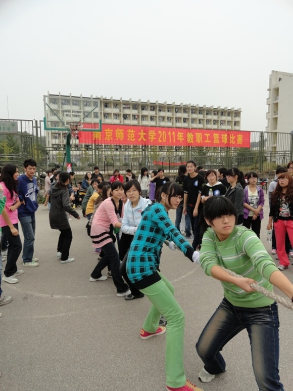 下午的趣味运动会更是在同学们心中留下了很深的印象。大家热情高涨,在比赛前纷纷来到场地进行最后的准备和练习,并且商讨对策,交流技巧,互相鼓舞。特别是到了跳长绳、拔河的比赛环节,生物师范班的同学们更是摩拳擦掌、跃跃欲试、信心十足。在跳长绳的比赛中,不仅速度有一定的竞争性,更重要的是零失误的稳定发挥,最终生物师范取得第三名的成绩。在拔河比赛中,生物师范班全部由女生上场,同学们信心满满、一鼓作气战胜了对手,最终取得亚军的好成绩。