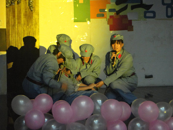 比赛开始后,评委们一一入座。在团委书记支景老师一番简短致辞后,比赛正式拉开帷幕。在同学们富有感染力的表演里,让大家看见了革命年代善良中国百姓的斗智斗勇,看见了英雄先烈们勇于奉献,甘于牺牲的可歌可泣,看见了中国共产党诞生之路的崎岖艰难。来自社会发展学院的同学表演的《双生》,将人物刻画得惟妙惟肖,情感表现得细致入微,在情深之处,更是流下令人心酸的眼泪,无不慨叹在那个时代所具有的伟大革命情感。接着,闪耀的红色荧屏,又为大家呈现了外语学院和化学科学学院同学的生动演绎,他们用心用情去诠释了人物的内心世界,践行了为党捐躯死而无憾的铮铮誓言。而由教师院10级历史师范班同学为我们带来的《黄河绝恋》,将那份为之动容的真情融入语言、动作、神态里,让演员的一颦一笑都牵动着观众的心弦,折射出无限光芒。