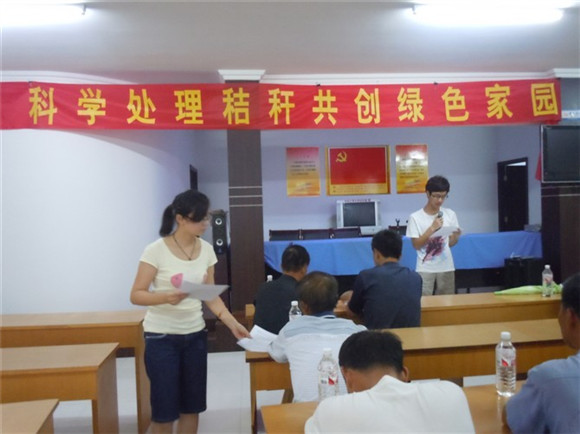 最后,综合调查情况与资料筹备,开展8月20日的知识宣讲会。当天会议现场气氛热烈,小分队代表以“知识问答”、“有奖竞猜”等形式,调动起大家对秸秆知识的积极性,得到了村民积极配合,受到村民的好评。