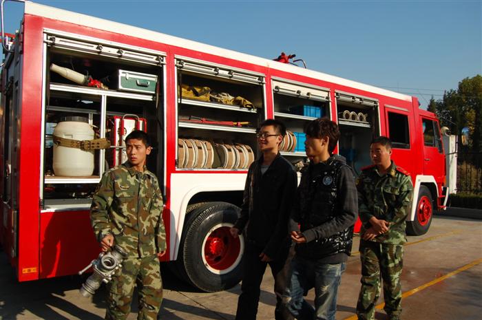招募的五名志愿消防员准时在敬文广场集合,出发前往南京市栖霞区消防二大队进行参观学习。参观过程中,消防官兵首先向同学们展示了各种校方器械,并一一向同学们解释了这些器械的用途与使用方法。随后,同学们又观摩了消防车的消防演练,大家无不为消防员们熟练的操作发出阵阵赞叹。最后,消防员带领同学们参观了消防器械仓库和荣誉室。一排排消防器材和一张张奖状,令同学们对消防员产生了由衷的崇敬,对消防员这个充满奉献精神的职业有了更加深刻的理解。参观活动结束之前,同学们与全体消防员合影留念,记录下这段难忘的经历。回到学校后,同学们在老师的指导下学习了灭火器的使用方法,并进行了模拟灭火练习。