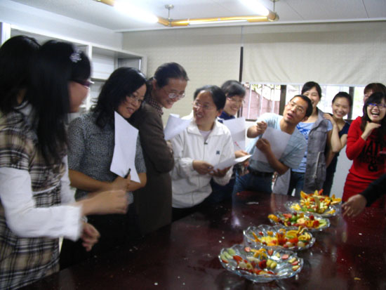 比赛的最后,由周晓静老师宣读了比赛的获奖团队,并为选手颁发了奖品。之后师生一起愉快地享用了选手们的劳动成果,此时,比赛结果变得不再重要,快乐已充满了整个资料室。