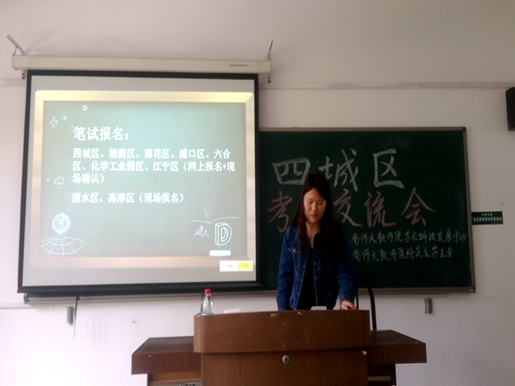 4月19日下午,教师院14级思政师范班在仙林校区学正楼212教室举办“南京市四城区考编”主题分享会。在教师院学术科技发展中心的协助下,本班邀请了学科教学(思政)专业的研究生学姐杨越,旨在帮助大家解决关于考编、就业方面的疑问。