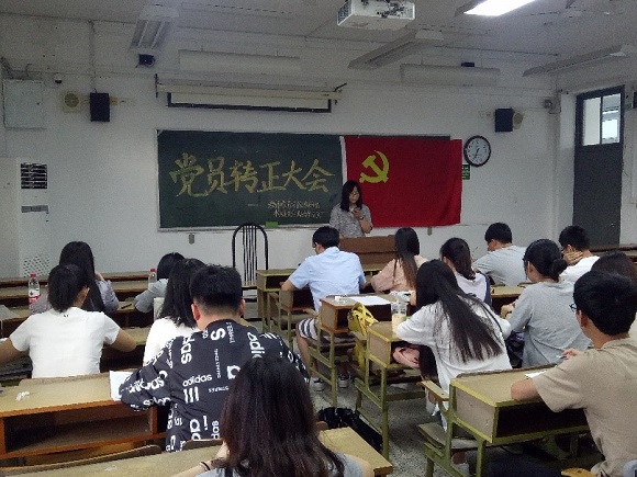 大会伊始,吴捷同志交代本次支部议程是讨论关于侯晓玲、孙雯、魏代娜、朱潇逸、张弛、刘坤豪共6名预备党员的转正问题。并请组织委员清点到会人数。组织委员点名,向书记汇报到会情况。书记确认人数后播放国际歌,全体成员起立,待国际歌播放完毕全体成员坐下,进入下一环节。接下来侯晓玲、孙雯、魏代娜、朱潇逸、张弛、刘坤豪同志分别上台宣读了转正申请书,从生活、学习、工作、思想等方面对自己成为预备党员的一年来的情况进行了汇报。6名预备党员依次通过无记名投票,最终全部转为正式党员。