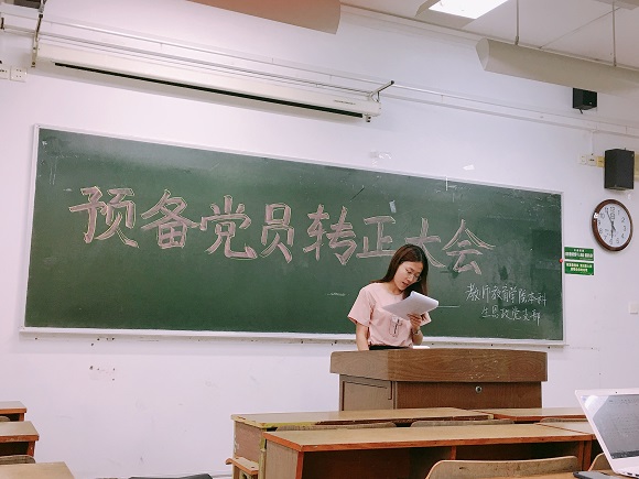 本科生思政党支部于学明楼209教室开展了2019春季的预备党员转正大会,本次大会本科生思政党支部共到场16人,1人因事请假,其中正式党员3名,本次大会由党支部书记周箐雯同学主持。