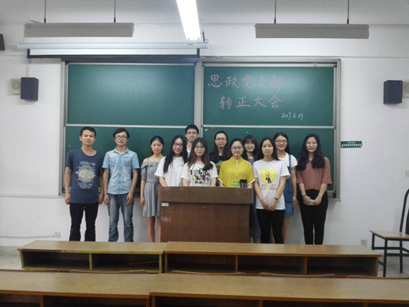 思政党支部党员发展大会在仙林校区学正楼307教室顺利召开。转正大会由思政党支部书记罗敏逸同志主持,转正对象是陆诚、王晓婷和郭家乐三位同志。思政党支部的全体党员和预备党员出席会议。