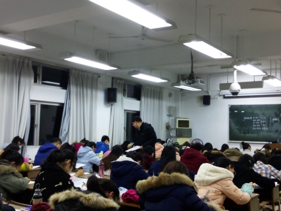 14级辅导员殷志伟老师亲临现场查看同学们的考试情况。本次考试由博彩网址大全
