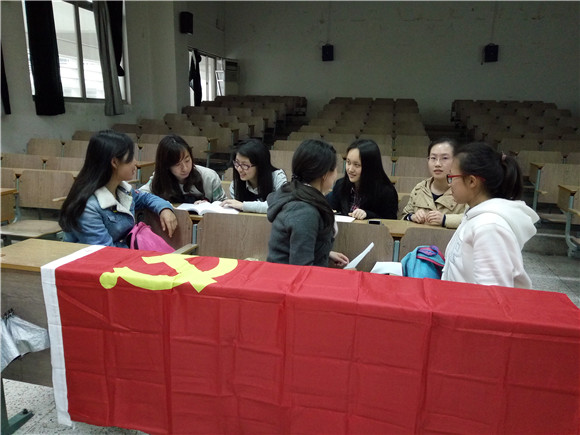 4月26日下午,在南京师范大学学正楼202教室,15级英语师范班中党小组的7位成员集体学习了两会精神,并通过小组讨论,单独发言等多种形式开展了时事讨论。