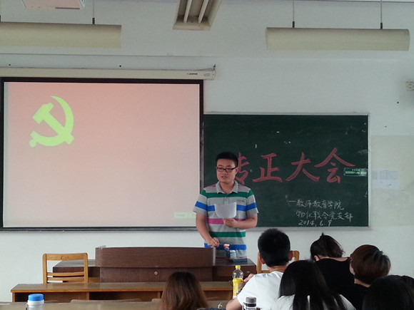 物理化学党支部在学明楼410教室举行了预备党员转正大会。此次的会议由张丹等6名同志发表了转正志愿,并顺利的由中共预备党员转为了正式党员。