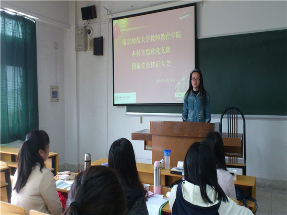 本次转正的3位同学皆很优秀。曹晓秋同学是大四学姐,为转正事宜特地从外地赶回南京,在汇报自己情况的同时,不忘向在场的学弟学妹传授自己在大四找工作以及考编等方面的经验。郭怡和聂华玲作为大三同学,学习刻苦努力,成绩优秀,工作能力强,入党动机端正,深得同学和老师的好评。