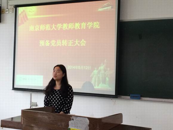 本科生英语党支部预备党员转正大会在仙林校区学明楼209教室成功举行,本次大会主要围绕我支部胡珈,胡梦蝶等七位同学的转正问题召开,大会由支部书记芮静同学主持,参加此次大会有全体支部成员。
