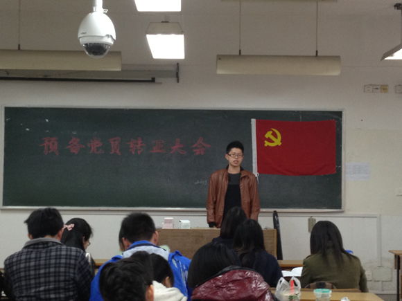 会议开始,由李艳凡等五位预备党员进行答辩。五位同学分别汇报了自己在一年考察期内的学习,生活,工作等方面的表现,并接受党支部的正式党员和老师的提问。问题从最新热点中国梦,南师十大人物,到如何做一个合格的党员,检验新党员现场应答的灵活性,和对问题理解的独特性。之后19名预备党员依次描述了他们在考察期时各个方面的表现,以及自己需要保持的优点,仍需改进的不足之处。作为见证,各入党介绍人向组织汇报了转正申请人在考察期内的表现,并对其能否转正进行评议。最后,由10级正式党员表决,一致同意卫佳琪等19名预备党员按期转为中共正式党员。