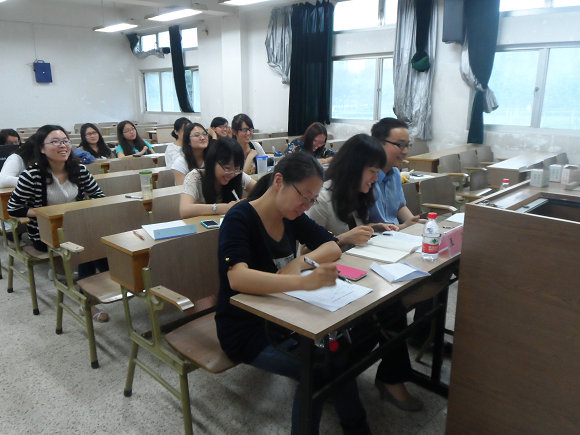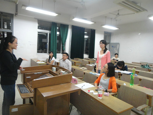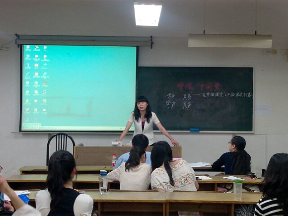 比赛之初,主持人说明了本次比赛的评分标准和时间要求。根据赛前抽签顺序,来自10级历史师范的秦倩倩同学首先为大家展示了她的“微课堂”——科举制度废除对当今城乡文化教育的影响,微课初赛就在她清晰的教学思路,自然大方的教态中拉开序幕。接着,18位参赛选手一一带来了他们的说课。教科院钱红同学台风亲切,注重和学生的互动;教师院吴怡雯的“中国式”过马路角度新颖,见解深刻;初琳琳同学从食品安全角度切入,紧扣党的十八大的主题……同学们的微课主题、说课风格各不相同,表现十分精彩,获得了老师们的好评。