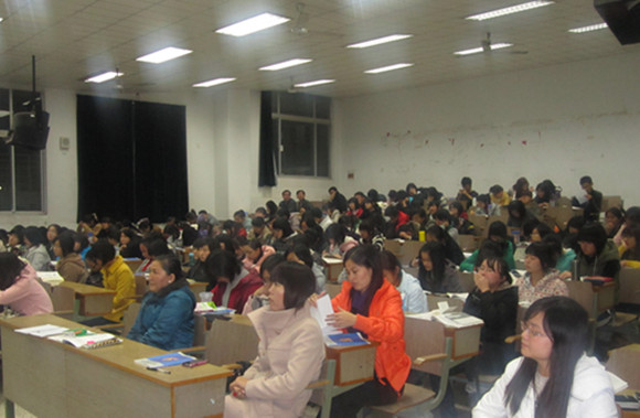 党委副书记朱冬梅老师进行了名为《如何做一名优秀的党员》的讲座,冬日的傍晚已经寒风刺骨,然而在远离校园中心的学海楼里,冒着寒风前来听讲座的学生们将偌大的教室挤的座无虚席,而找不到座位的同学们甚至甘愿站着听完了为时一个多小时的讲座,这份热情令人动容。