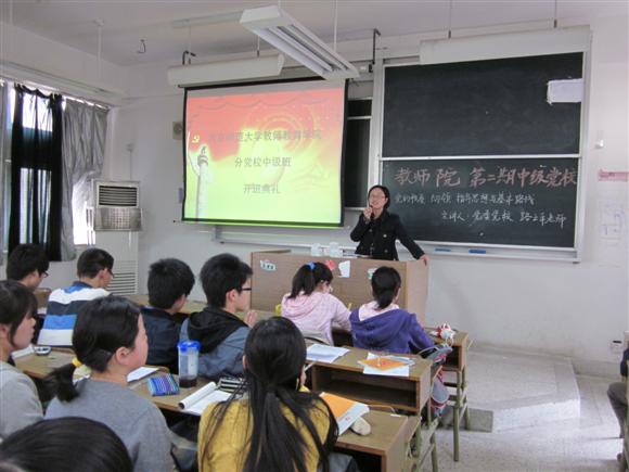 团委书记支景老师主持了本次开班典礼,全体中级党校学员和党员学生代表准时到场参加。