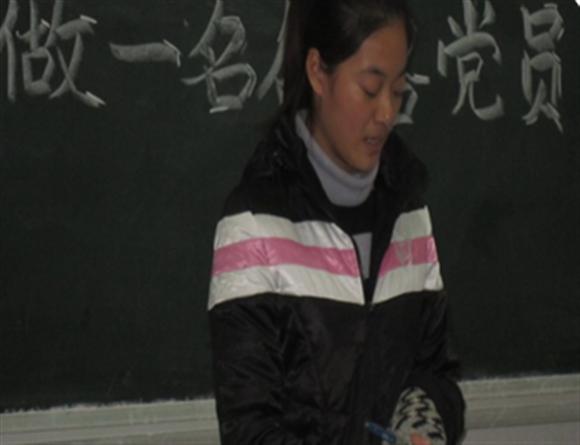 在讨论会上,主持人张绍琳针对在座同学的入党动机以及参加党校学习后的感想,组织同学们进行讨论交流。来自汉语言文学的祖文静同学情绪激动地说:“作为中国的新一代大学生,我们更应该树立坚定的理想,端正入党动机,积极向党组织靠拢”,表达了她希望加入共产党成为一名党员的热切希望,数学系的周同学对此表示认同,他认为“我们应不断提高自己的政治觉悟,认真学习先进党员那种为人民服务的精神,尤其是郭明义。把‘为人民服务’的宗旨融入日常的生活中,知行结合,作一个有爱心、有热情、懂感恩的大学生”。