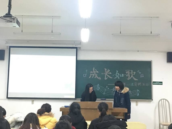 3月2日晚,16级汉语言文学师范“成长如歌”主题团辅活动于仙林校区学正楼213教室成功开展。本次活动由心理气象员刘丽媛同学和王凯旋同学主持,组织委员张志伟同学与宣传委员石奕楠同学进行密切配合。