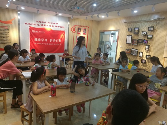 7月20日上午,在南大和园小区,南京师范大学趣味科普课堂队的暑期社会实践进行了最后一天的活动。在那里,队员通过视频展示、游戏、讲解等多种方式向小朋友介绍了东西方饮食的差异与中国各省的地理位置和风土人情,开阔了小朋友的眼界,培养了他们的文化多样性意识,丰富了他们的暑假生活。
