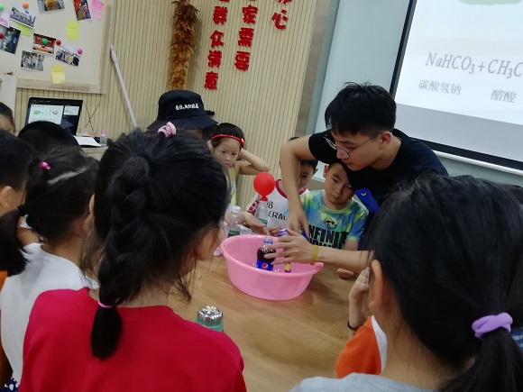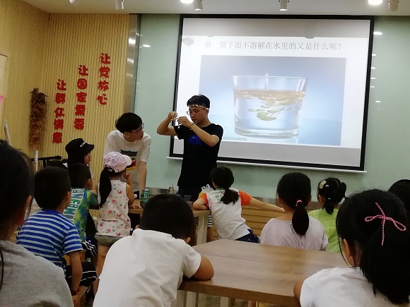 7月12日上午,在南大和园社区,南京师范大学趣味科普课堂队的暑期社会实践活动进行了第四天的活动。在这次课堂中,小朋友了解了“化学”的概念,并且通过看动画短视频、做简单有趣的小实验来理解不同物质在水中的溶解程度,进一步认识 “溶解”的概念。在看视频和手工的过程中孩子们边体验边思考,学习到了很多有趣的科普小知识。他们的知识体系、认识能力也逐渐得到完善和提高。