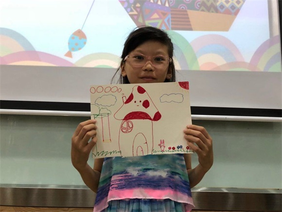 第四部分,游戏环节。主讲人分发了白纸,让小朋友们在上面画出自己理想中的家。小朋友们积极响应,纷纷画出了创意可爱的家。