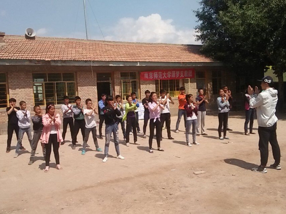 7月29日下午,源梦支教团米麻龙村初高中班的体育课以教授武术操的形式进行。