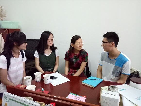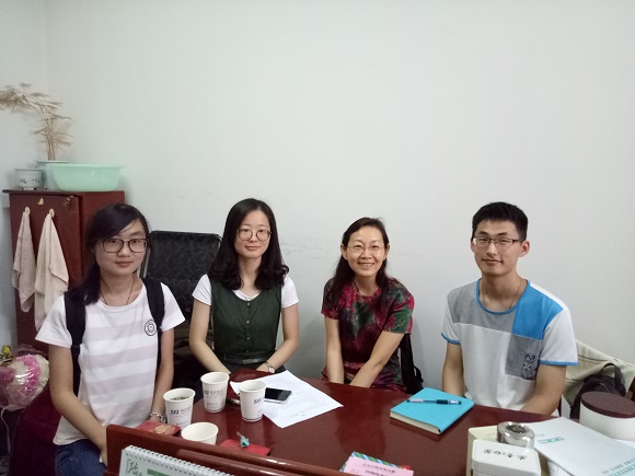 首先,徐州小分队的同学们向郭军英老师作了自我介绍,队员崔皓翔简要介绍了本次活动的目的与预期成果。在征得老师的同意后,队员们对本次采访进行全程录音,以方便后期整理材料。采访开始后,郭军英老师向队员们讲述了她的南师故事,包括报考南师大生物系的原因,对南师大的初印象,求学过程中记忆最深的事情等等。郭军英老师自1990年从南师大毕业后,一直在徐州市第一中学任教至今,三十余年,不改初心。当队员们提及教师行业普遍存在的“职业倦怠期”,郭军英老师十分肯定地说道:“从来没有。”如郭老师所说:“每一堂课对教师来说都是全新的,同一堂课在不同的时间、面对不同的学生都是不一样的,每次上课前都需要认真准备。”在采访的同时,队员们还简单询问了办公室里的物理老师冯老师对郭军英老师的印象。最后,郭军英老师从前辈的角度,对在校的学弟学妹们给出了寄语和祝福以及对母校115周年的校庆祝福。