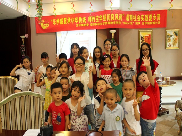 “乐学盛夏承中华传统•师传宝华扬优良风尚”暑期社会实践夏令营第四次来到句容市宝华镇新城社区,继续帮助孩子们遨游于中华文化的海洋中。“师心小筑团队”在今天的课堂里向孩子们介绍了中国的传统节日的由来和习俗,使孩子们充分了解了中华民族悠久的历史文化。除此之外,“师心小筑团队”还为孩子们带来了生动有趣的一堂“江湖化学”,让孩子们在自己动手实验的过程中学习到奇妙化学现象背后的原理。