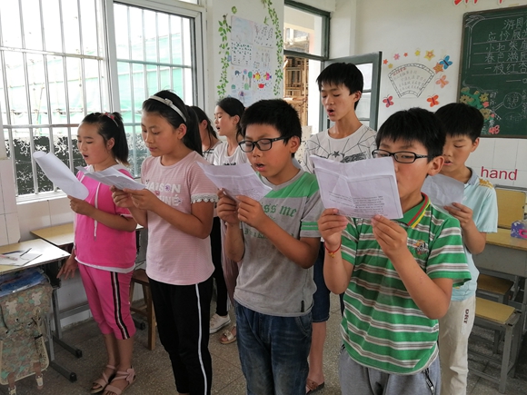 6月30日,“砺学筑梦”支教团在付庄小学顺利完成了第三天的活动,今日的课程主要包括朗诵、合唱、趣味运动与观看励志电影。