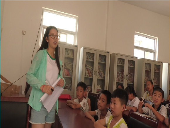 7月9日上午,在天津市蓟州区下营镇石炮沟村村委会活动室,“虹光“支教团队举办的“七彩课堂“成功进行了天津历史文化小讲堂,主讲是来自16级建筑环境与能源应用工程专业的申妍。