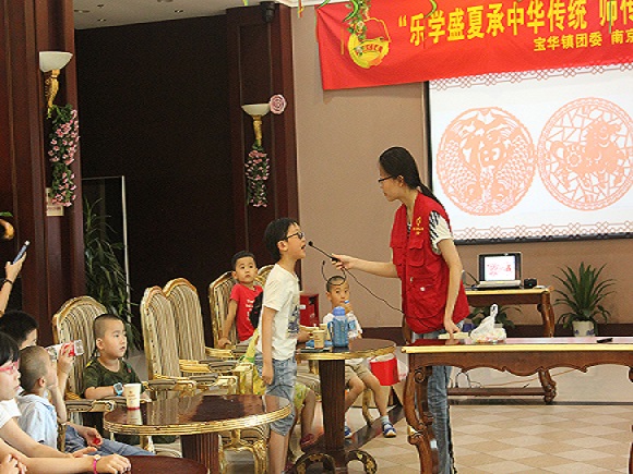 “乐学盛夏承中华传统·师传宝华扬优良风尚”暑期社会实践夏令营再次来到句容市宝华镇新城社区,为孩子们带来了妙趣横生的第四、五节课。“师心小筑团队”在今天的课堂里向孩子们介绍了中国的传统节日的由来和习俗,使孩子们充分了解了中华民族悠久的历史文化。除此之外,“师心小筑团队”还为孩子们带来了生动有趣的一堂“江湖化学”,让孩子们在自己动手实验的过程中学习到奇妙化学现象背后的原理。