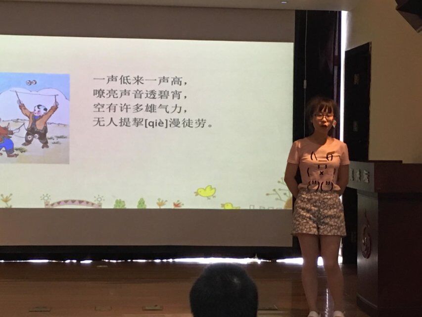 本次的的课堂以师生互动为主。讲师首先带领小朋友们学习了《水浒传》里一首与空竹有关的诗歌,然后向同学们介绍了空竹的传统和历史渊源,激发了小朋友们的兴趣。接着讲师给小朋友们详细介绍了抖空竹的好处和抖空竹的三种基本方法。最后便是课堂的重头戏——老爷爷带来的精彩的空竹表演。老爷爷表演完一段抖空竹后,又给大家展示了抖空竹的各种方法和技巧,并让每位小朋友都上台试一试抖空竹的乐趣。在老爷爷手把手地精心指导下,所有小朋友都学会了抖空竹。课程结束后,全体工作人员还和老爷爷拍照留念。