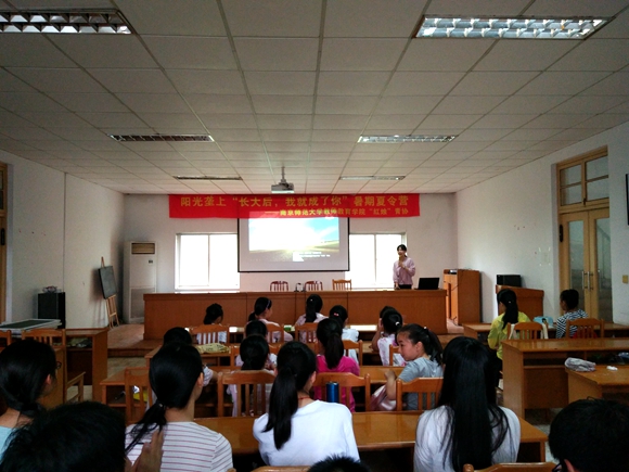 首先,队长钱思裕同学主持了夏令营开营仪式,回顾了2016年夏令营开展成果,并对2017年暑期社会实践进行了工作介绍,说明了夏令营的主要课程和一些注意事项。之后志愿者轮流上台做了自我介绍,并细致介绍了各自教授的课程,小朋友们也轮流介绍了自己的名字,并通过击鼓传花的小游戏加深了对彼此的了解。
