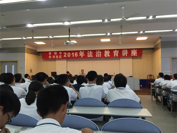 9月12日下午,江苏省靖江高级中学联合合兴社区开展2016年法治教育知识讲座,各班由实习小组成员带领各班前往报告厅。在小组成员的带领下,同学们井然有序地入座,接受法治教育知识的熏陶。