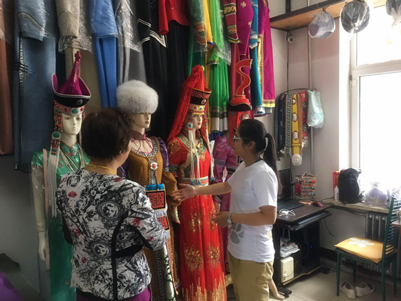 “草原之星”暑期实践团队前往高娃民族服饰开展有关于蒙古族服饰制作技艺以及传承问题的研究。小队在调研中欣赏了美丽的民族服饰,还了解到了关于蒙古族服饰的历史渊源以及制作手艺的发展情况。
