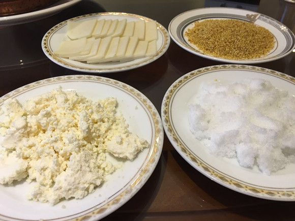 接着,我们根据之前调查的草原饮食文化的资料进行实地调研并取得相关资料。草原上的饮品主要以奶茶为主,而食品分为红食和白食。红食在蒙语中为乌兰伊得,即肉食。煎、炒、烹、炸、烤、炖、熏、蒸、煮的烹饪技术在历史上丰富了世界饮食文化,全牛术斯、全羊术斯、羊背术斯、烤术斯等等都演绎着蒙古族的食肉文化。特别是整牛整羊的进炉,全牛全羊上台堪称世界烹调艺术的绝技。白食在蒙语中为查干伊德,即奶食。蒙古族常把奶食品当作日常生活中的茶点,随之创造发明了炒米、炒面之类的方便食品,为人类饮食文化的发展起到了巨大作用。小队在牧民家品尝过特色食品后,问及牧民家里现在的饮食习惯还是以蒙古族的习惯为主,并无太大改变,由此得知这一非物质文化遗产目前保存较为完好。